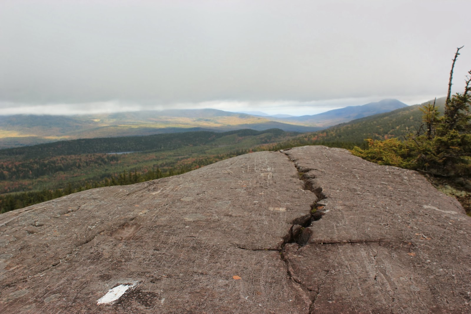 I recently visited the 100-Mile Wilderness in Maine and was able to discover many of the nearby trails. Although I didn’t have the best weather I was still able to get some great views! The pictures above and below are from Third Mountain (elv. 2,061′). There is a trail that starts from Gorman Chairback or you can also access the Third Mountain Trail at the trailhead on Chairback Mountain Road (4.2 miles round trip).The Third Mountain Trail is a moderate blue blazed trail crossing several streams with fantastic wooden bridges, and some wet areas with bog bridges on the beginning part of the trail. The trail then starts to gain elevation with a series of long switchbacks, then climbs a few rock staircases and a wooden ladder. The trail then intersects with the white blazed Appalachian Trail (AT) where there are a few false summits, make sure to keep hiking until you see the sign that says Monument Cliff! From here there are great views of Long Pond, and north towards the Barren-Chairback Range. To make a longer hike you can also do the 9.7 mile loop going over the peaks of Chairback Mountain (2,190 feet), Columbus Mountain (2,350 feet), and Third Mountain (2,061 feet) this is a great challenging day hike and of the Top 10 Fall Hikes in Maine!