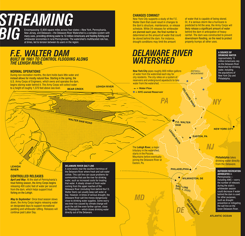 But the water that feeds the Lehigh—which sits behind the F.E. Walter Dam, owned and operated by the U.S. Army Corps of Engineers—is also part of an interconnected system that has, at times, pitted regional interests against each other.